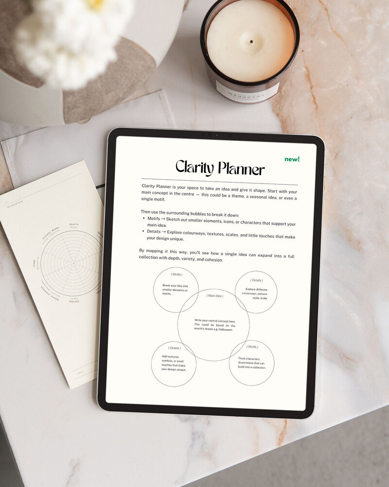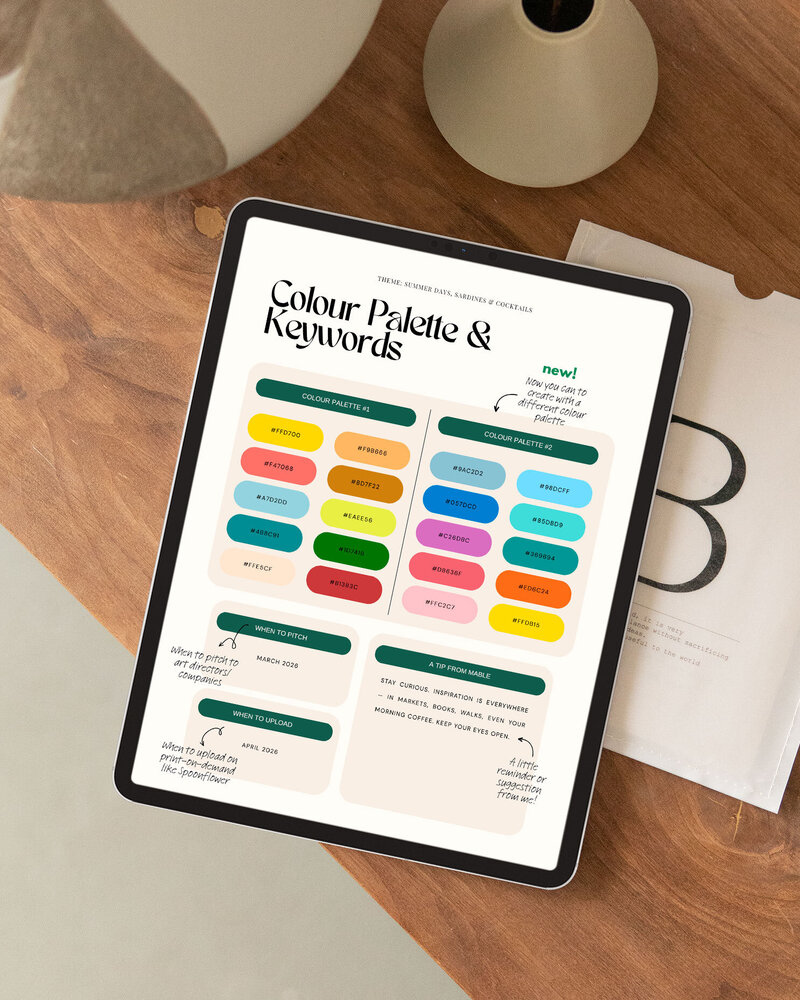 It’s designed to help you stay inspired, create artwork that’s trend-driven and market-ready, and know exactly when to pitch your designs to companies or upload them to print-on-demand platforms like Spoonflower.