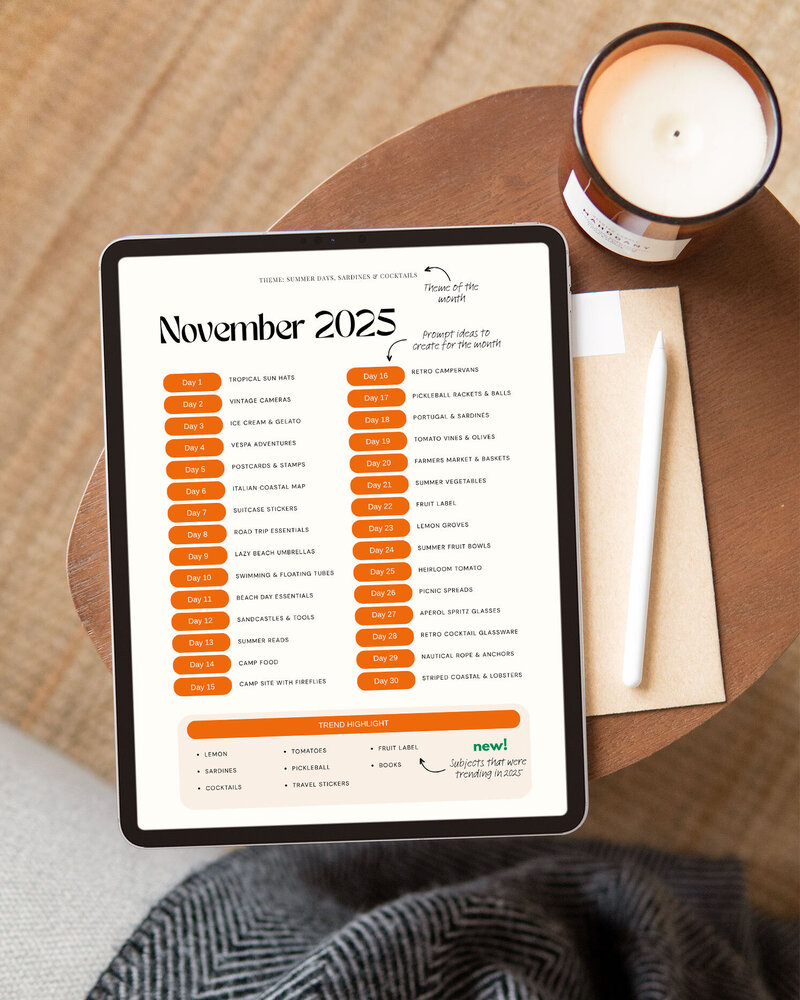 Each month includes fresh, relevant prompts designed around trends, holidays, and evergreen subjects.